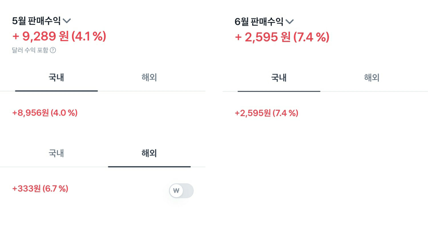 6월은 벌써 7%네요. 액수가 적어서 욕심을 부리지 않은 덕분인지 수익률이 제법 나오네요.