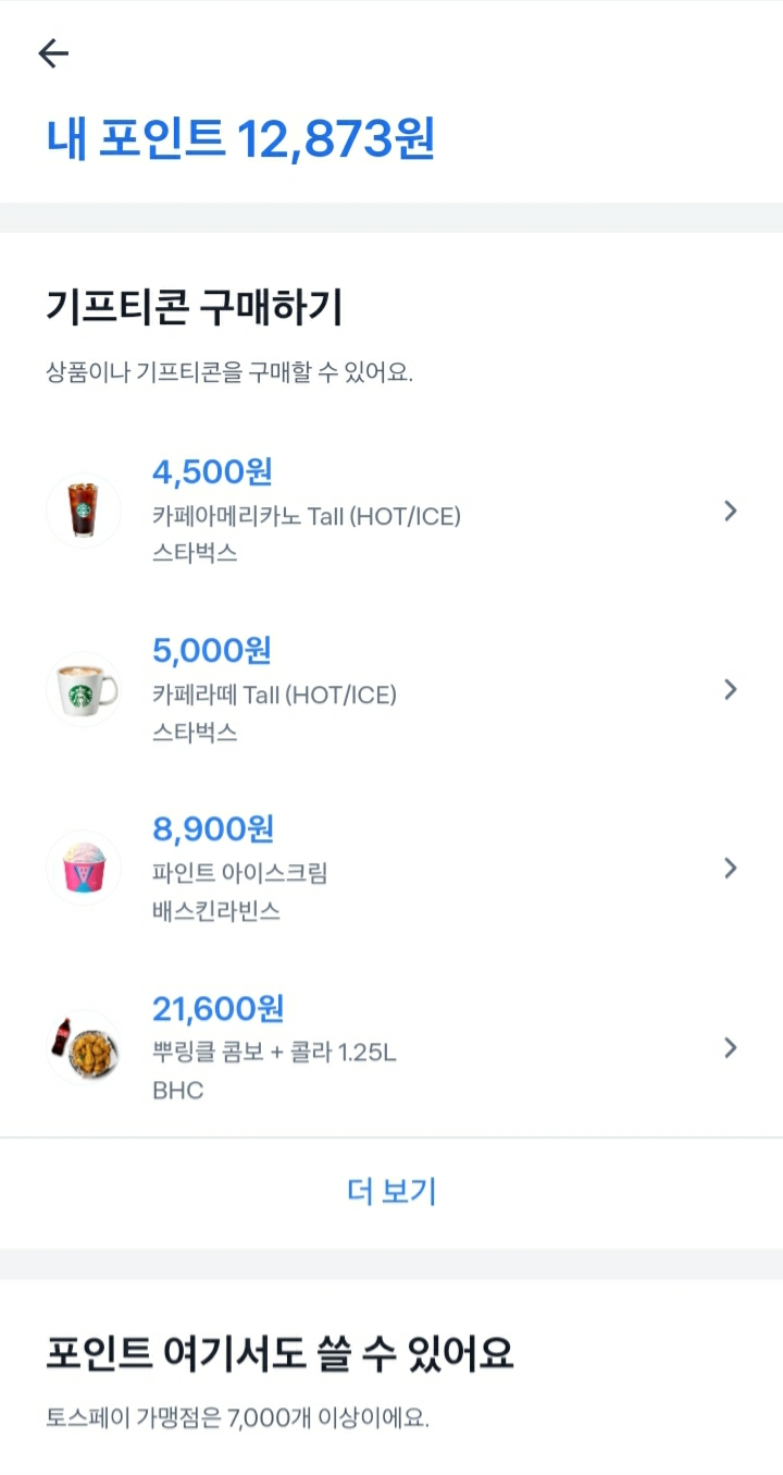 포인트 사용하기에 들어가보시면 여러 가지 기프티콘도 구매가 가능합니다.