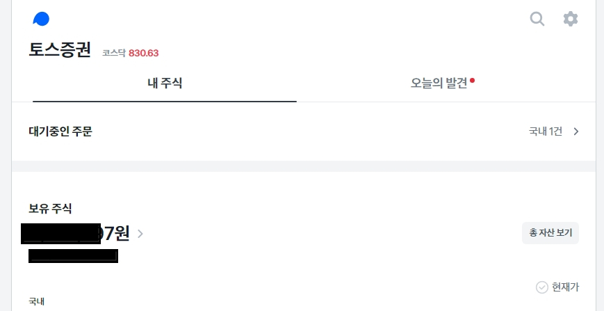 5. 드디어 보고 싶었던 토스증권 화면입니다.