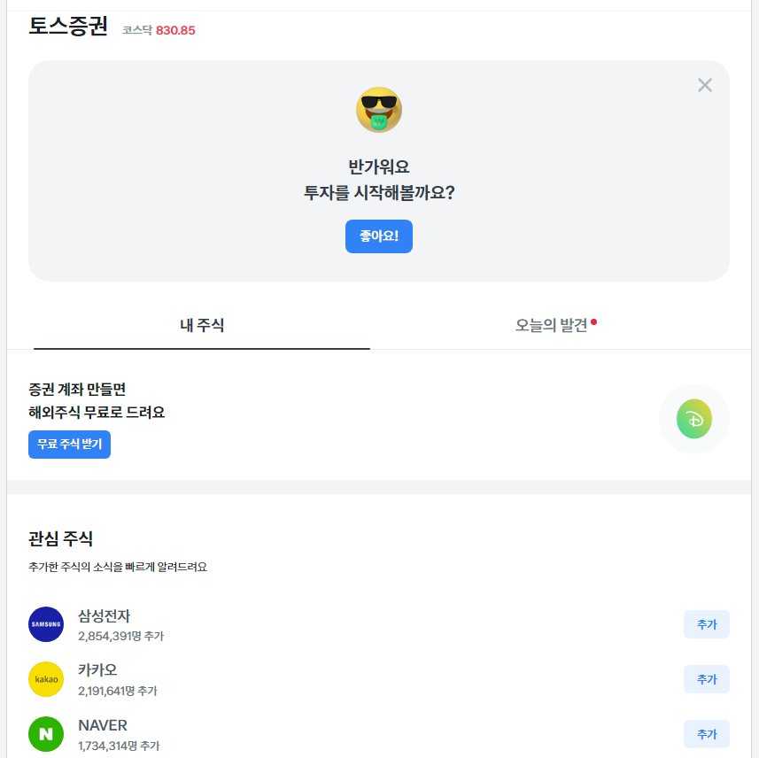 무료 송금 서비스 때문에 사용하기 시작했던 토스였는데, 이제는 주식까지 토스에서 하기 시작했습니다.