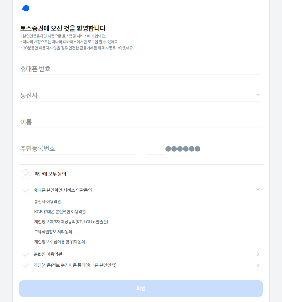 2. 토스 증권 유저시라면, 로그인 화면으로 고고..