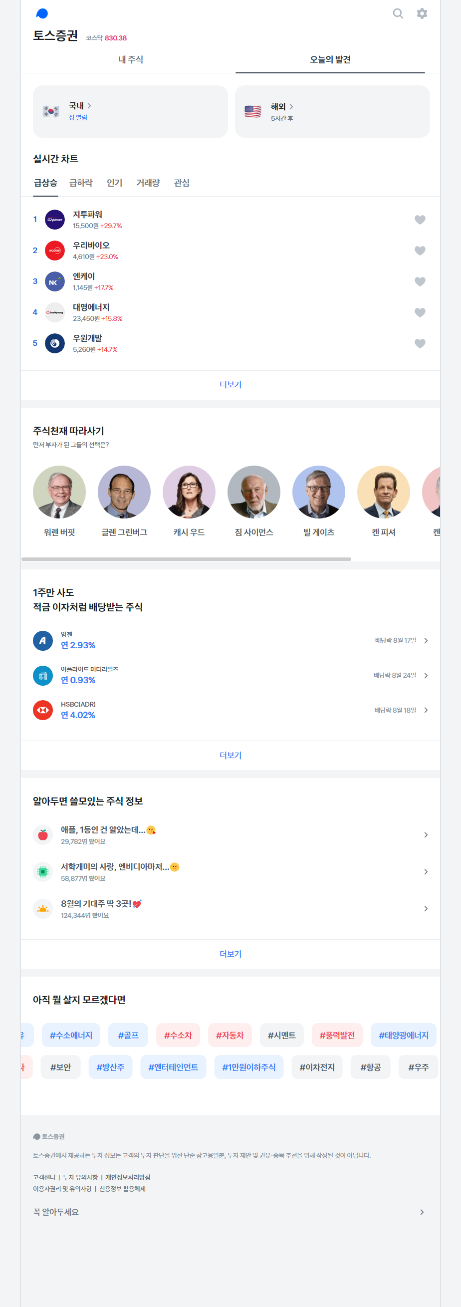 5. 드디어 보고 싶었던 토스증권 화면입니다.